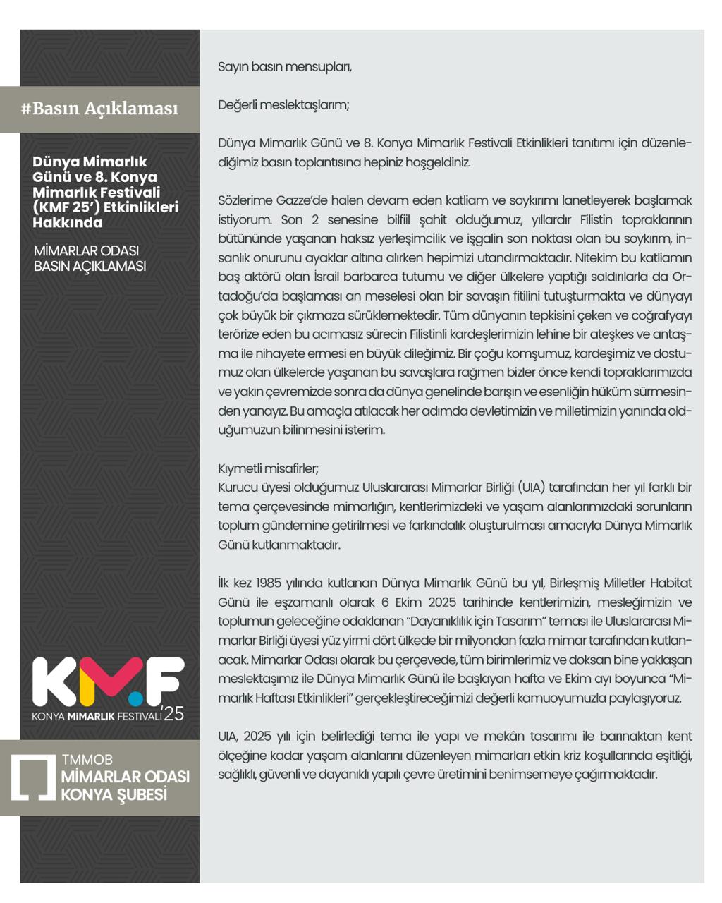 Dünya Mimarlık Günü ve 8. Konya Mimarlık Festivali Etkinlikleri Hakkında Basın Açıklması