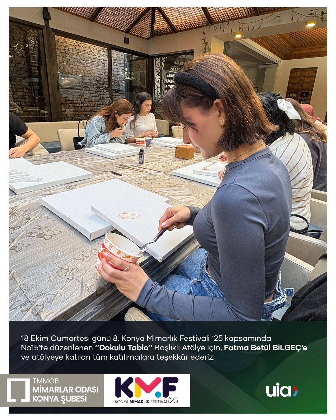 18 Ekim Cumartesi günü 8. Konya Mimarlık Festivali ‘25 kapsamında No15’te düzenlenen ‘’Dokulu Tablo’’ Başlıklı Atölye için, Fatma Betül BiLGEÇ‘e ve atölyeye katılan tüm katılımcılara teşekkür ederiz.