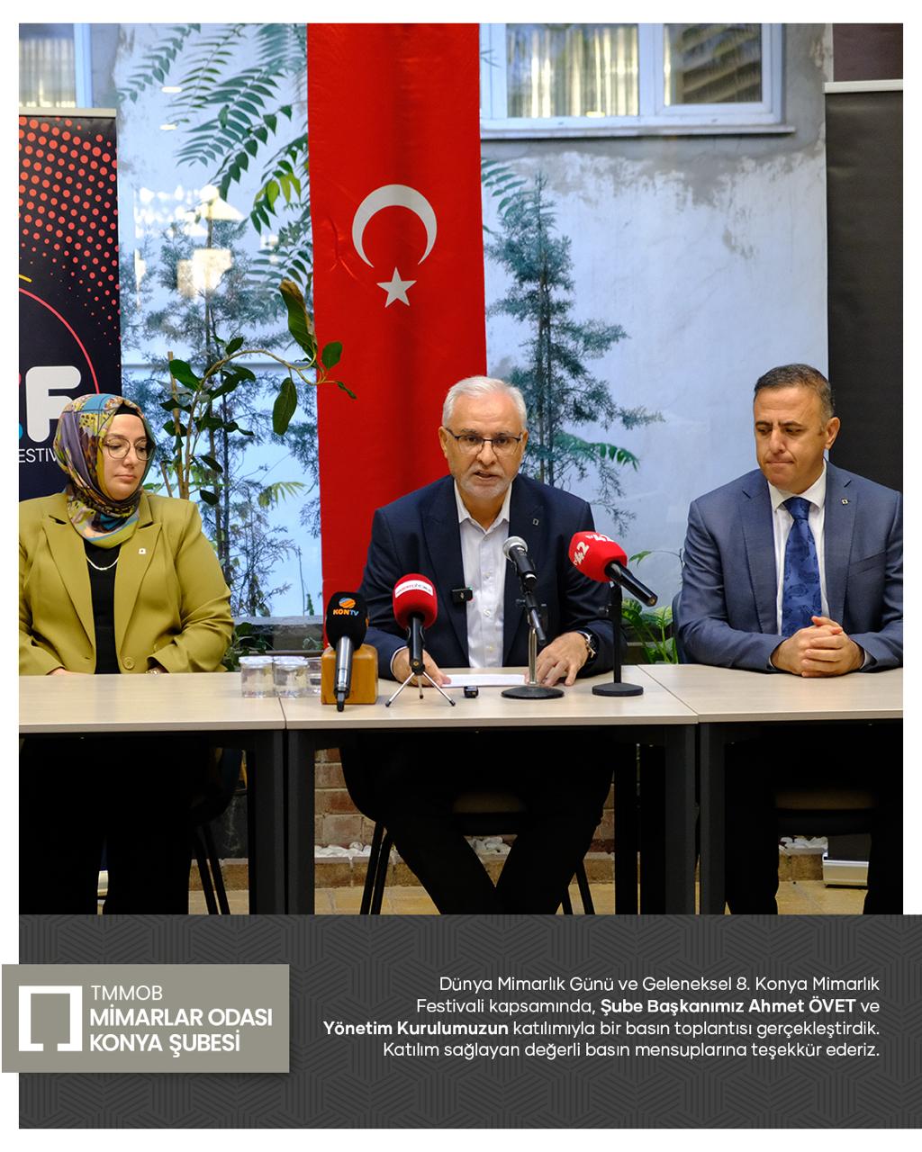 Dünya Mimarlık Günü ve Geleneksel 8. Konya Mimarlık Festivali kapsamında, Şube Başkanımız Ahmet ÖVET ve Yönetim Kurulumuzun katılımıyla basın toplantısı gerçekleştirdik. Katılım sağlayan değerli basın mensuplarına teşekkür ederiz.