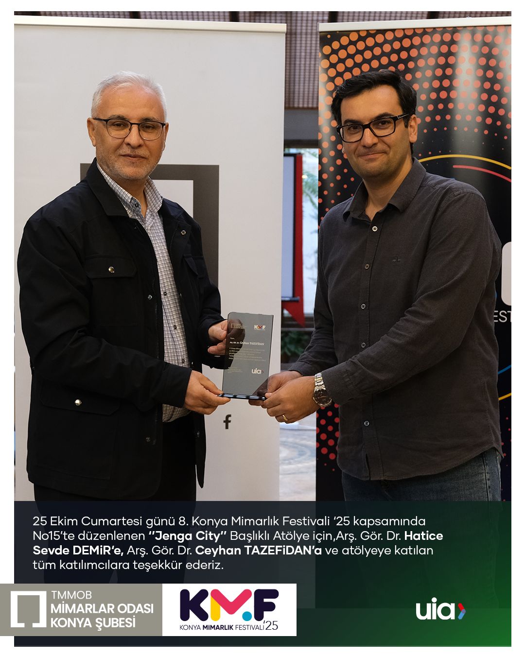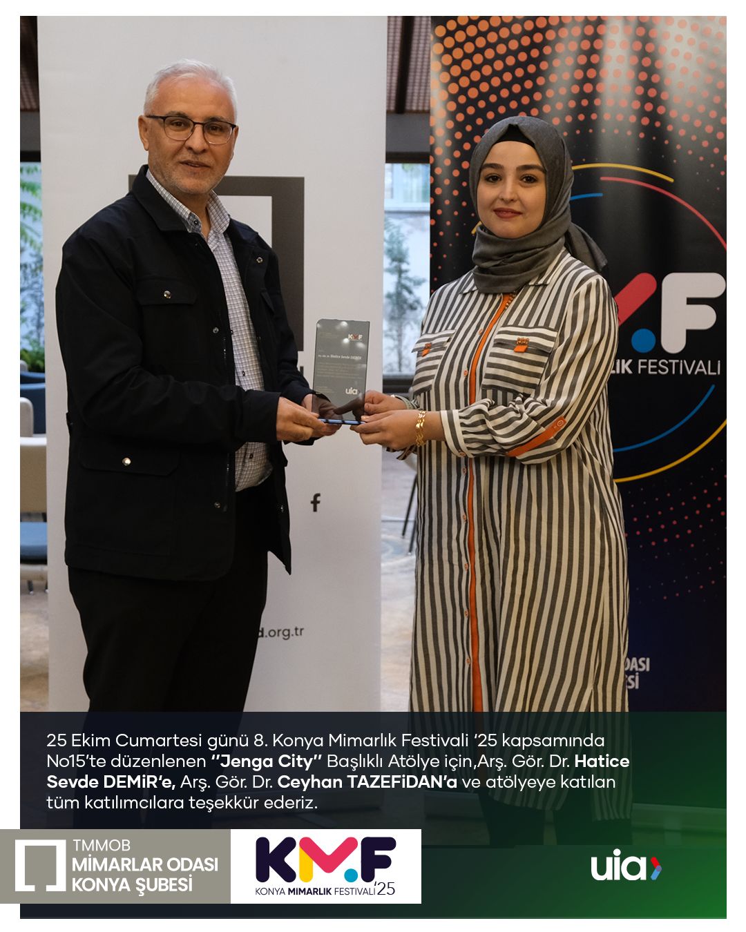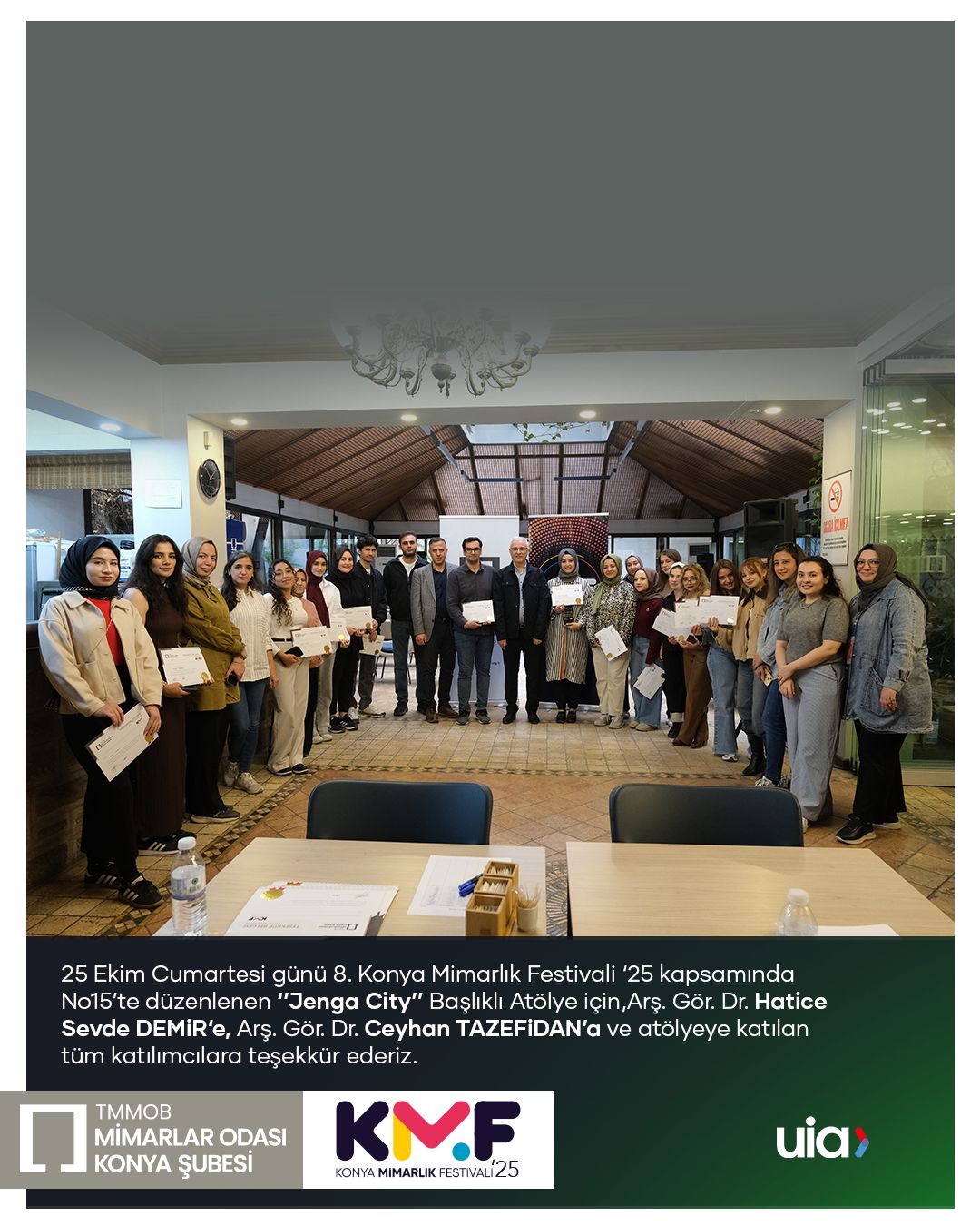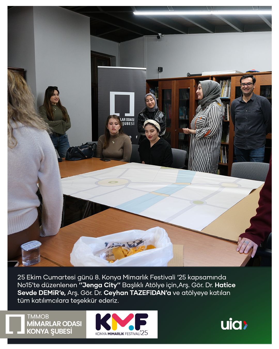 25 Ekim Cumartesi günü 8. Konya Mimarlık Festivali ‘25 kapsamında No15’te düzenlenen ‘’Jenga City’’ Başlıklı Atölye için, Arş. Gör. Dr. Hatice Sevde DEMiR‘e, Arş. Gör. Dr. Ceyhan TAZEFiDAN’a ve atölyeye katılan tüm katılımcılara teşekkür ederiz.
