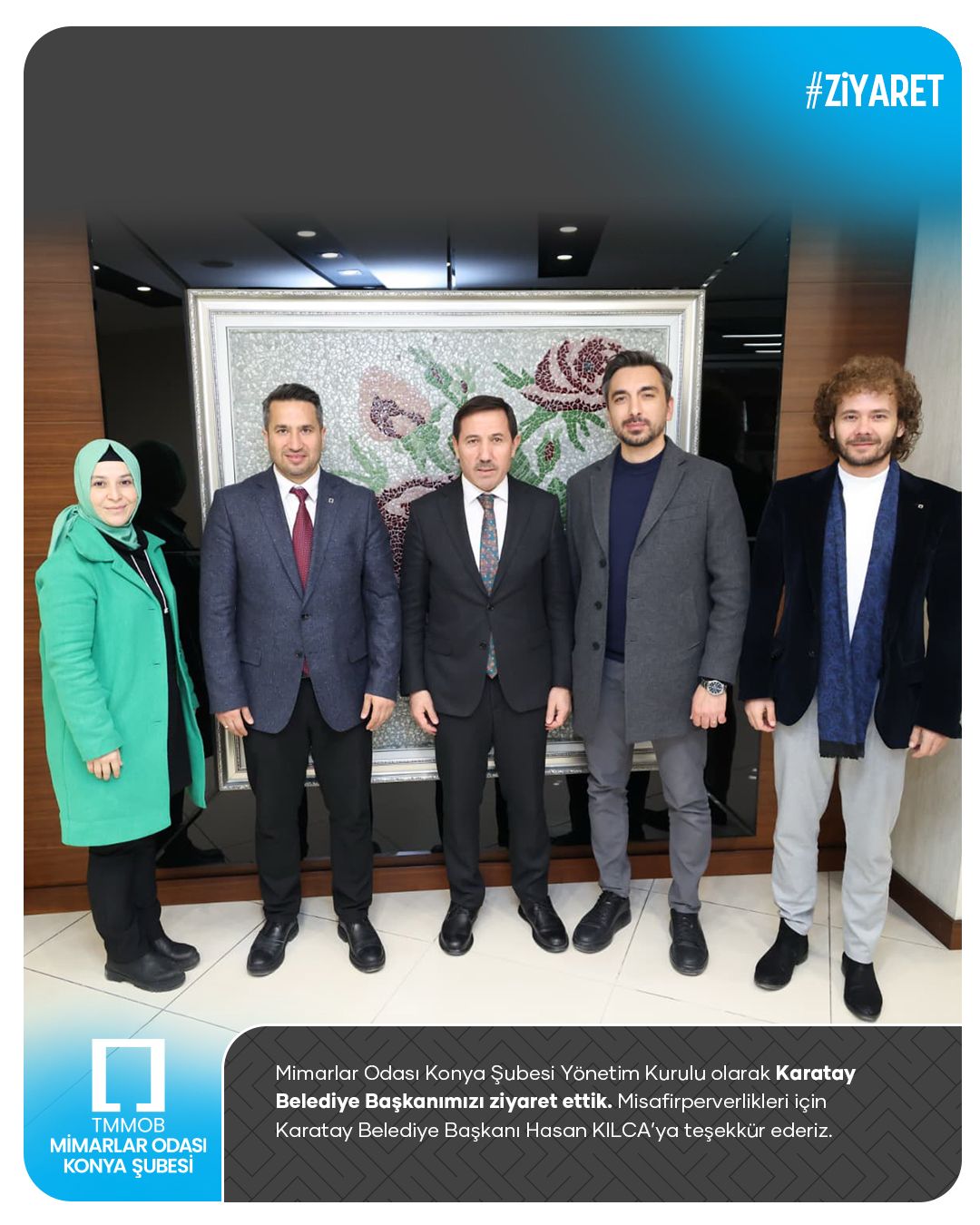 Mimarlar Odası Konya Şubesi olarak Karatay Belediye Başkanımıza ziyaret gerçekleştirdik. Misafirperverlikleri için Karatay Belediye Başkanı Sayın Hasan KILCA’ya teşekkür ederiz.