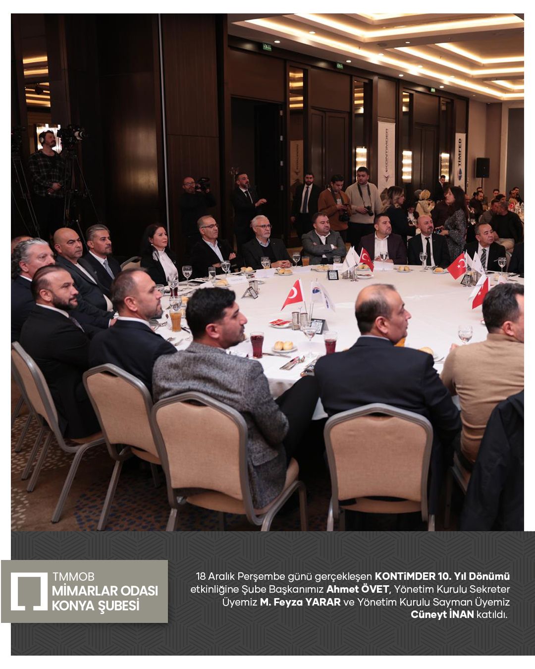18 Aralık Perşembe günü gerçekleşen KONTiMDER 10. Yıl Dönümü etkinliğine Şube Başkanımız Ahmet ÖVET, Yönetim Kurulu Sekreter Üyemiz M. Feyza YARAR ve Yönetim Kurulu Sayman Üyemiz Cüneyt İNAN katıldı.