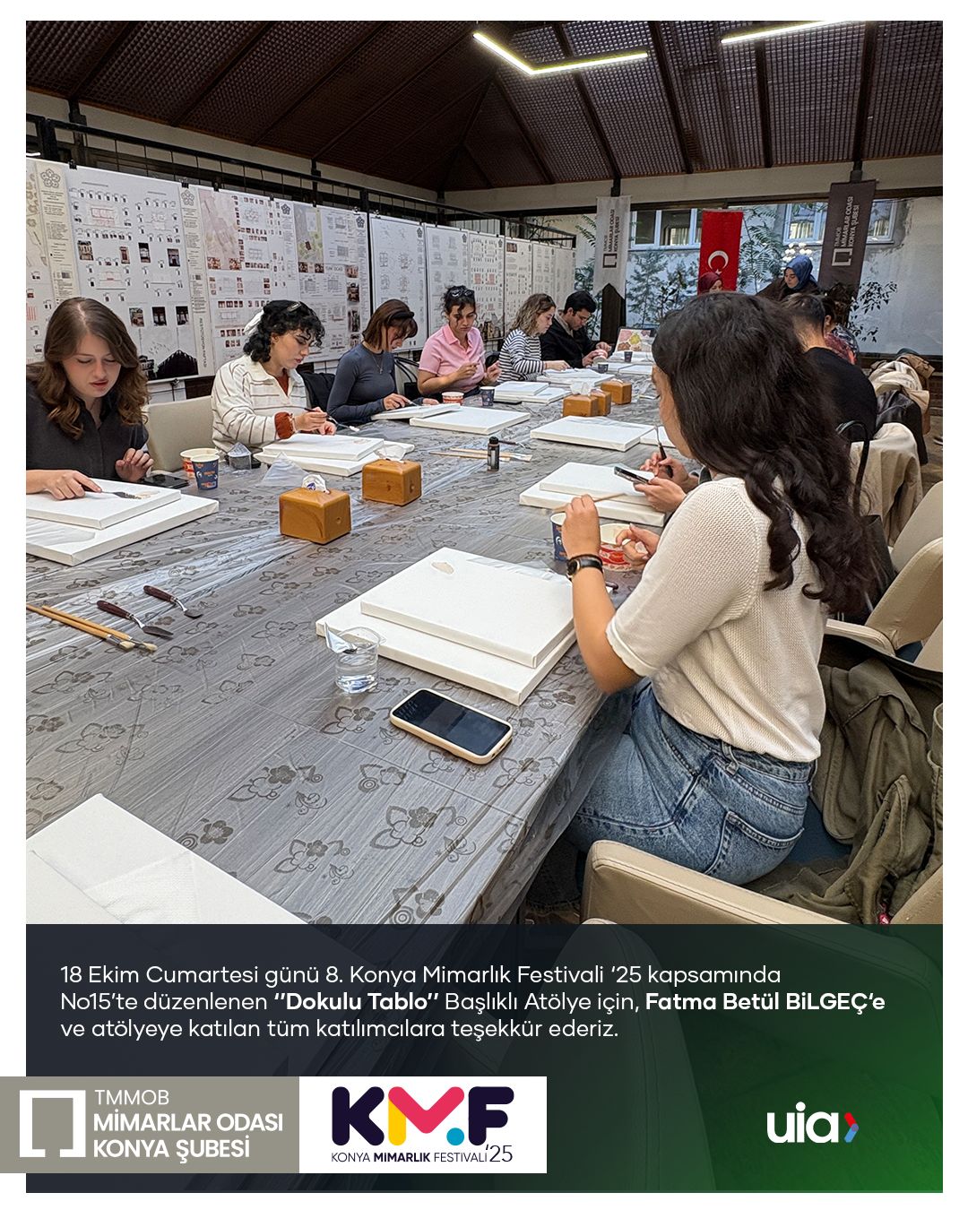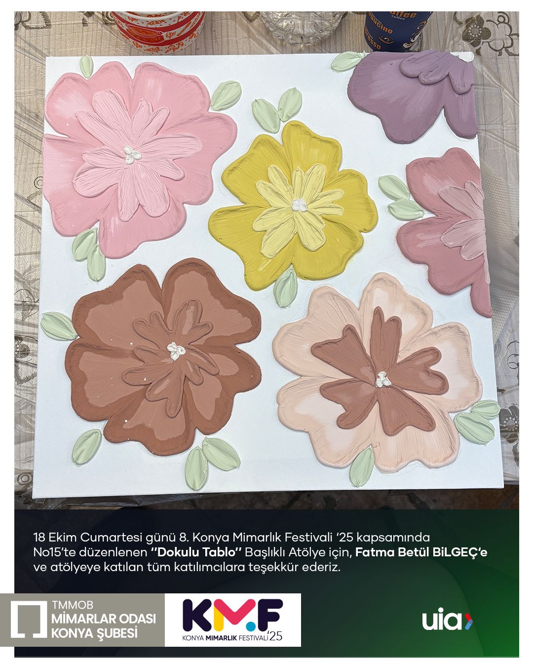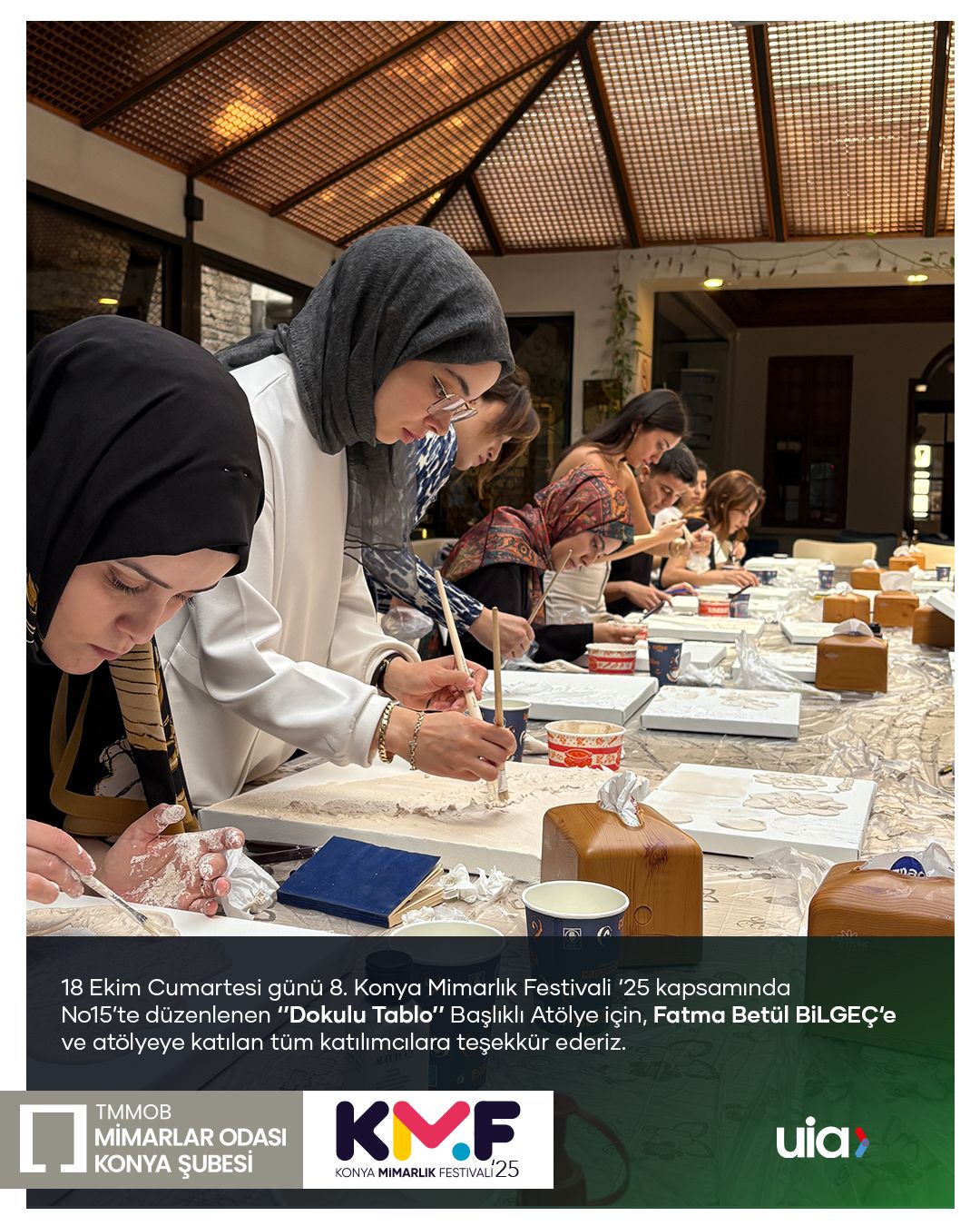 18 Ekim Cumartesi günü 8. Konya Mimarlık Festivali ‘25 kapsamında No15’te düzenlenen ‘’Dokulu Tablo’’ Başlıklı Atölye için, Fatma Betül BiLGEÇ‘e ve atölyeye katılan tüm katılımcılara teşekkür ederiz.