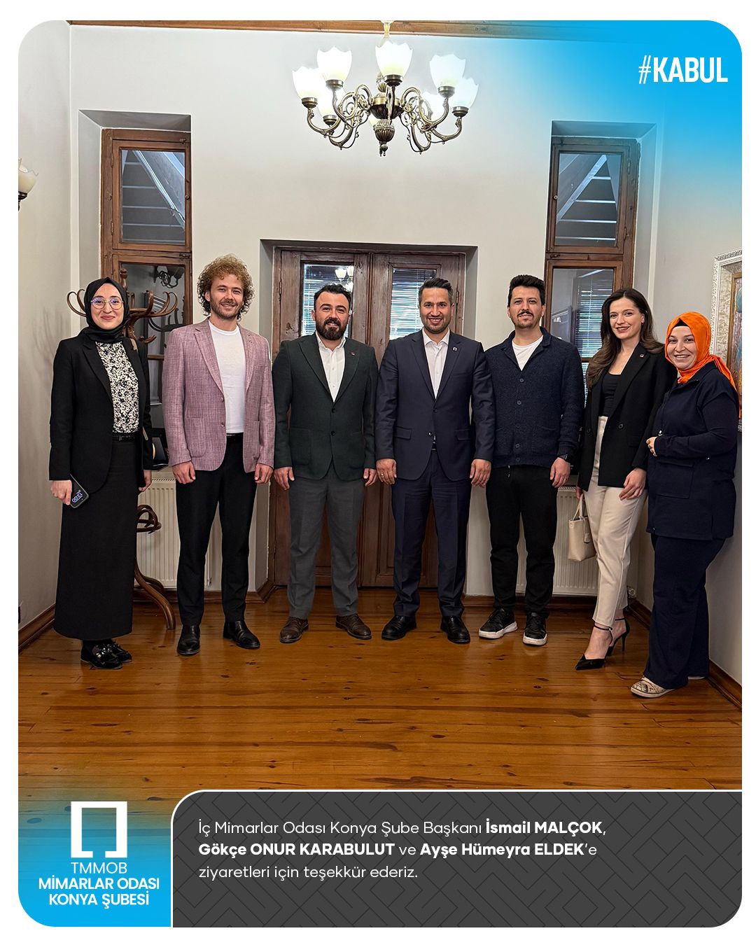 İç Mimarlar Odası Konya Şubesi Başkanı İsmail MALÇOK, Gökçe ONUR KARABULUT ve Ayşe Hümeyra ELDEK’e ziyaretleri için teşekkür ederiz.