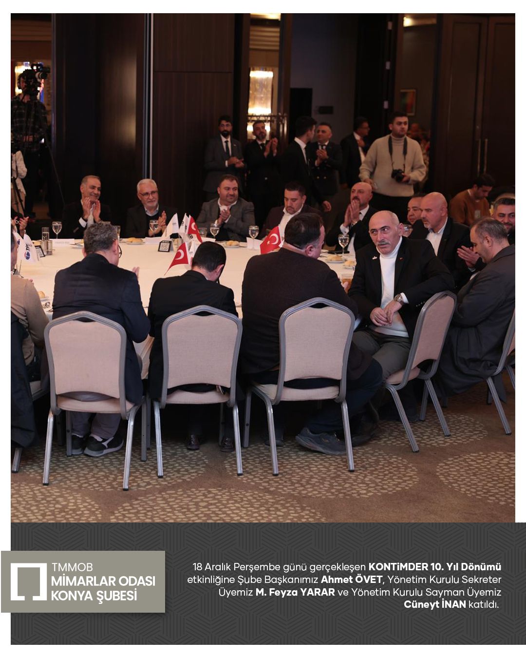 18 Aralık Perşembe günü gerçekleşen KONTiMDER 10. Yıl Dönümü etkinliğine Şube Başkanımız Ahmet ÖVET, Yönetim Kurulu Sekreter Üyemiz M. Feyza YARAR ve Yönetim Kurulu Sayman Üyemiz Cüneyt İNAN katıldı.