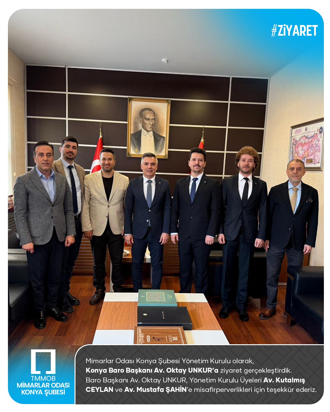 Mimarlar Odası Konya Şubesi Yönetim Kurulu olarak, Konya Baro Başkanı Av. Oktay UNKUR’a ziyaret gerçekleştirdik.