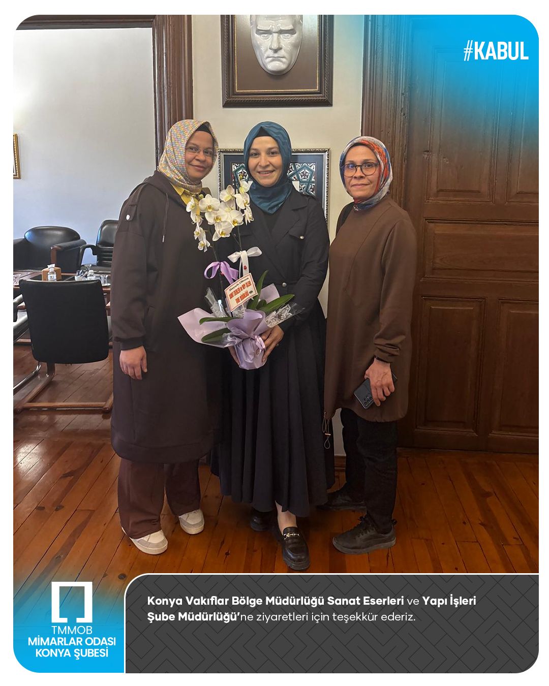 Konya Vakıflar Bölge Müdürlüğü Sanat Eserleri ve Yapı İşleri Şube Müdürlüğü’ne nazik ziyaretleri için teşekkür ederiz.