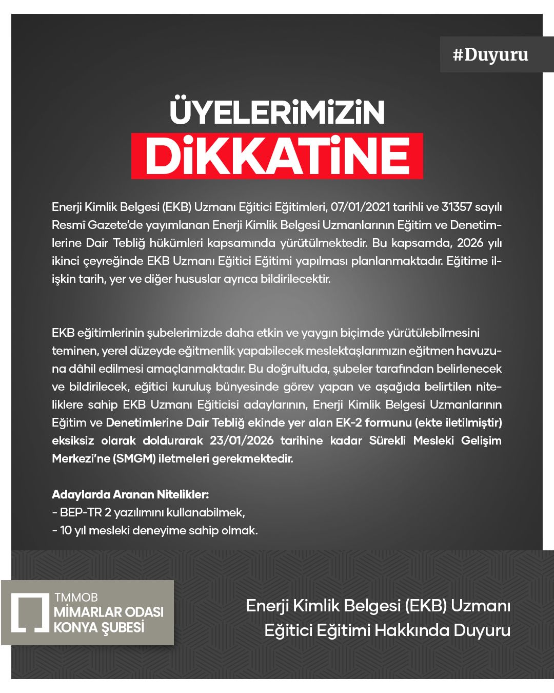 Üyelerimizin Dikkatine! Enerji Kimlik Belgesi (EKB) Uzmanı Eğitici Eğitimleri