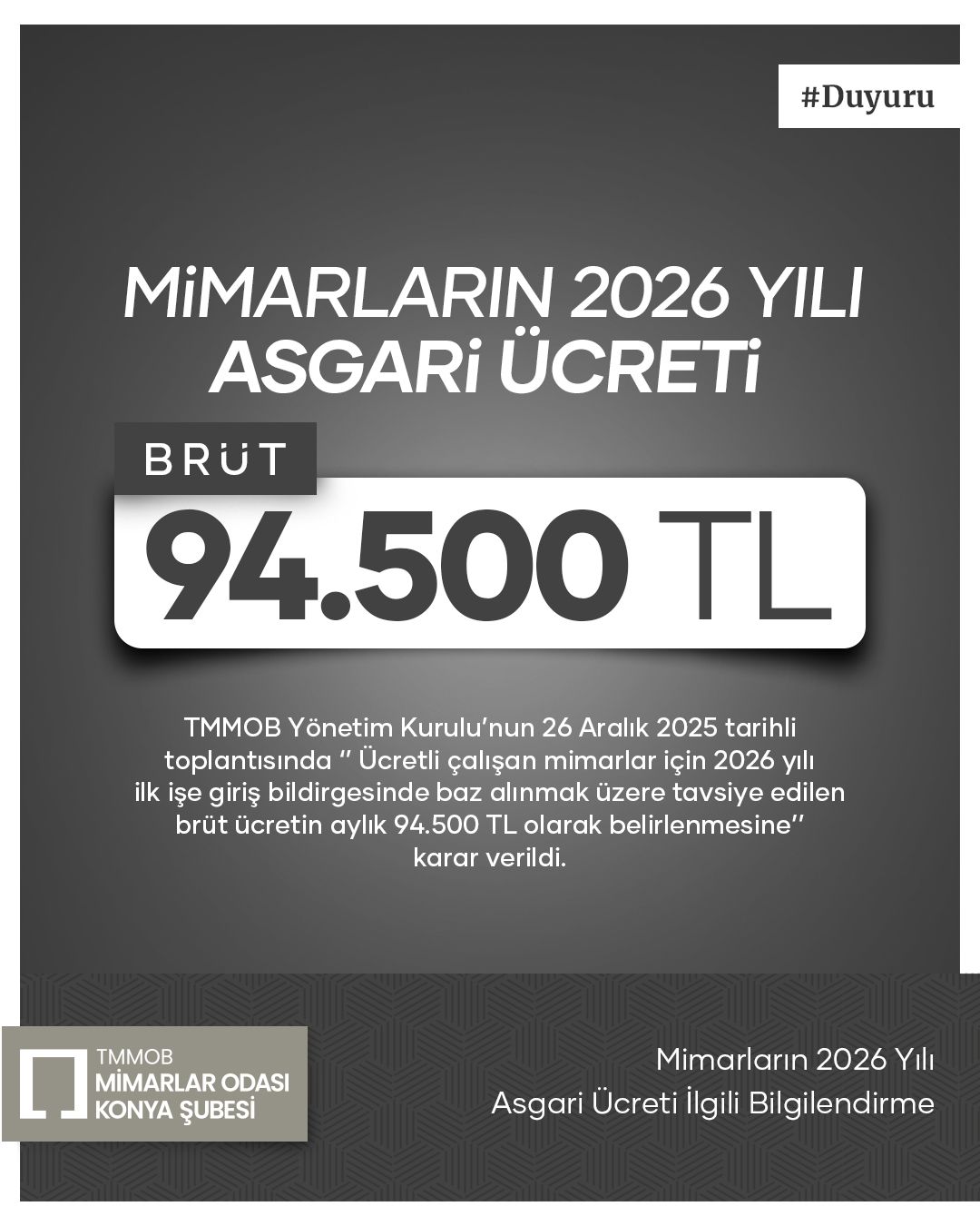2026 Yılı Mühendis, Mimar ve Şehir Plancıları Asgari Ücreti
